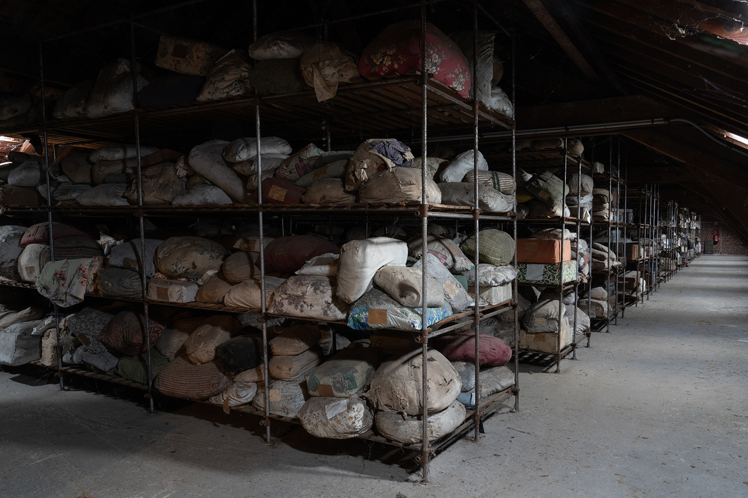 Des centaines de « petits cousus » sont entreposés dans ce grenier. Cette pratique consistait à emballer les effets personnels des malades psychiatrisés à leur admission en institution pour les préserver à long terme. Pour cela, il était d’usage de se servir d'un de leur vêtement pour confectionner ces ballots que l’on pouvait ensuite découdre pour le porter à nouveau tout en récupérant ses biens lorsque l’on sortait d’institution. Nombre d’internés n’étant jamais repartis, leurs petits cousus s’y sont entassés entre 1890 et la fin des années 1980.